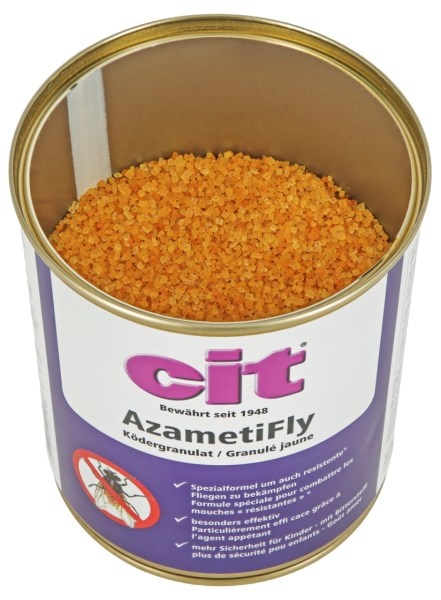 mehrere " Futterstellen" mit wenig Granulat an bevorzugten Fliegenaufenthaltsplätzen aufstellen. 100 g reicht für eine Stallgrundfläche von ca. 50 m2