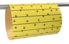 - Fliegen werden durch das Papier angezogen und bleiben auf der Falle kleben